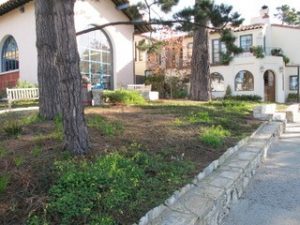 The library, which opened in 1928, was designed by architect Bernard Maybeck and built by M.J. Murphy. The Carmel-by-the-Sea Garden Club embarked upon a project to restore and improve the original garden area beginning in 2004. The library garden continues to be updated and carefully monitored as an on-going civic project. Our Club members volunteer their gardening skills monthly throughout the year.Before Photo of the Harrison Memorial Library